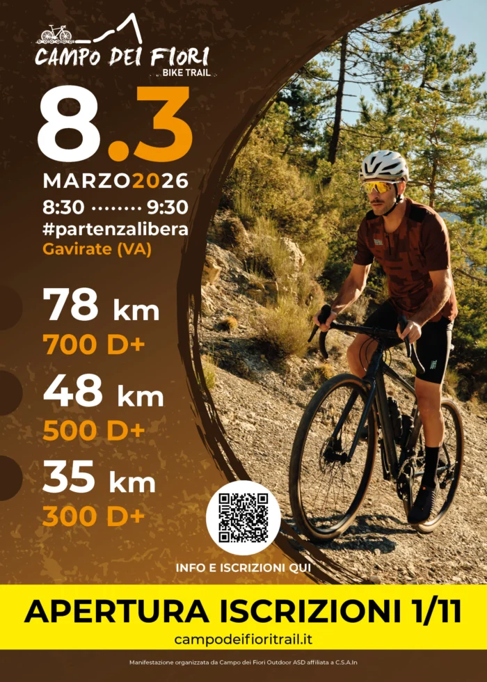 Il Campo dei Fiori Bike Trail Adventure รจ un raduno ciclistico non competitivo, senza cronometraggio, pensato per vivere una mattinata di pedalata tra lago, colline e sterrati ai piedi del Campo dei Fiori. Lโevento e organizzato da A.S.D. Campo dei Fiori Outdoor ed e a numero chiuso (solo 200 posti).