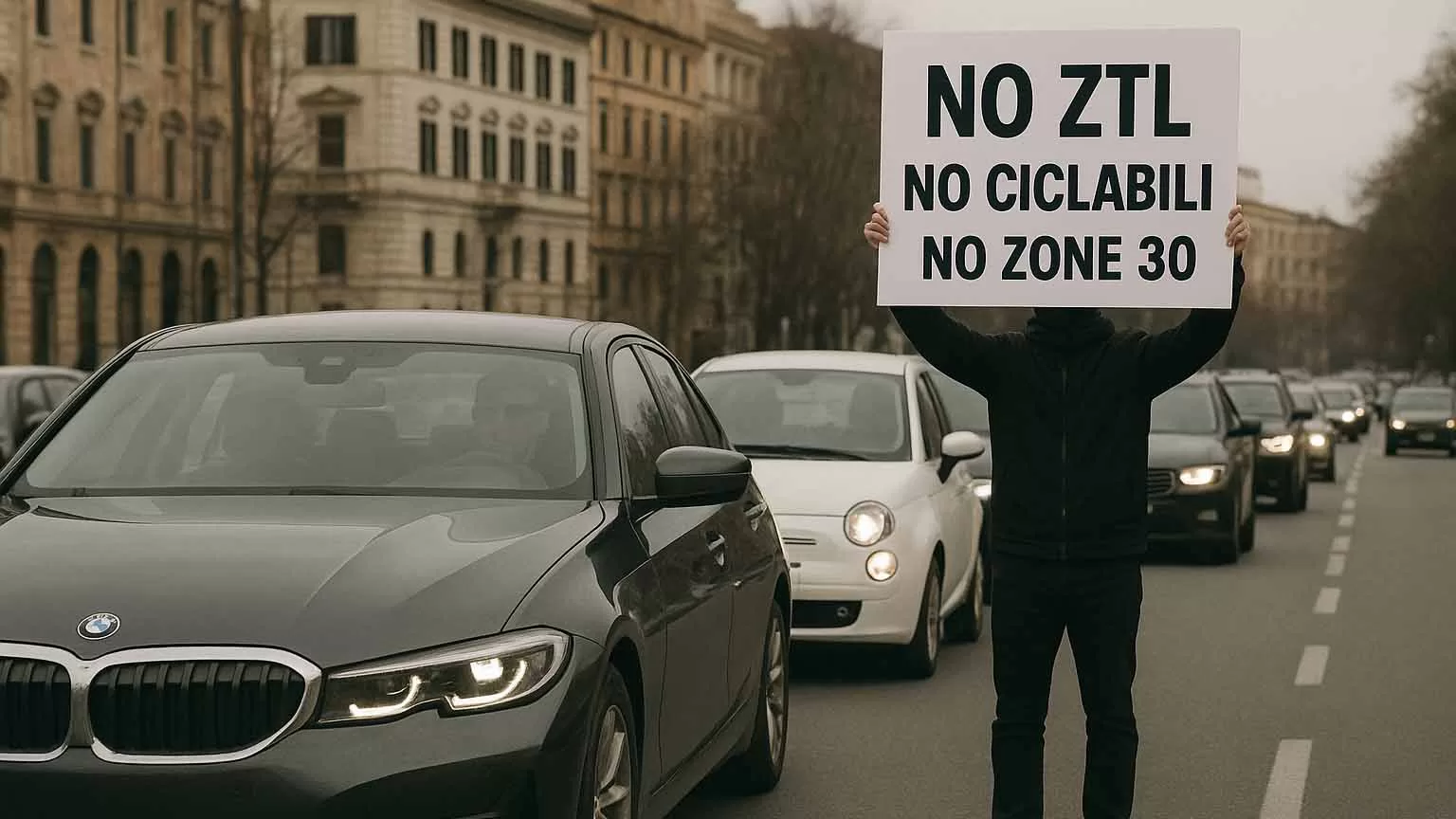 Roma: il corteo automobilistico “paradosso” di Fratelli dโItalia contro ZTL, ciclabili e Zone 30